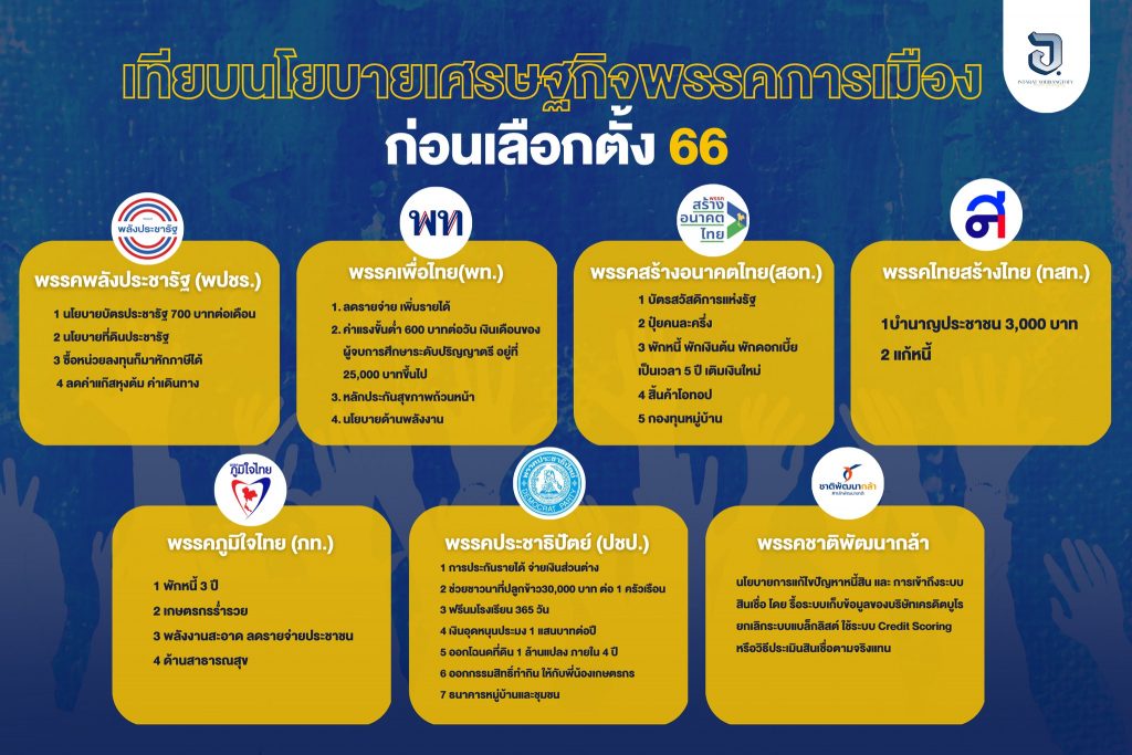 ใกล้ถึงการเลือกตั้ง ปี 2566 แล้ว  วันนี้ #เสธยอด มาอัพเดทนโยบายของแต่ละพรรค ที่เกี่ยวกับด้านเศรษฐกิจ มาดูกันว่า นโยบายพรรคไหนจะโดนใจประชาชนมากกว่ากัน