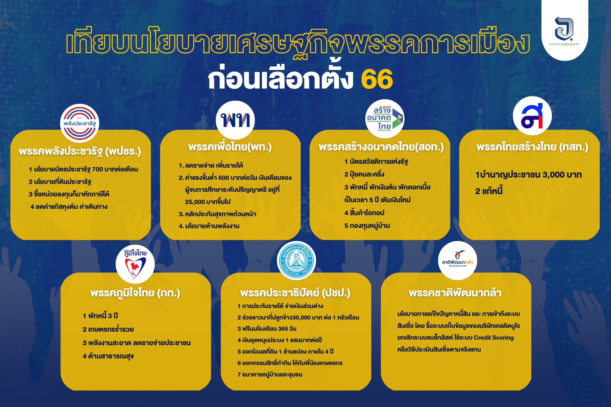 ใกล้ถึงการเลือกตั้ง ปี 2566 แล้ว วันนี้ #เสธยอด มาอัพเดทนโยบายของแต่ละพรรค ที่เกี่ยวกับด้านเศรษฐกิจ มาดูกันว่า นโยบายพรรคไหนจะโดนใจประชาชนมากกว่ากัน